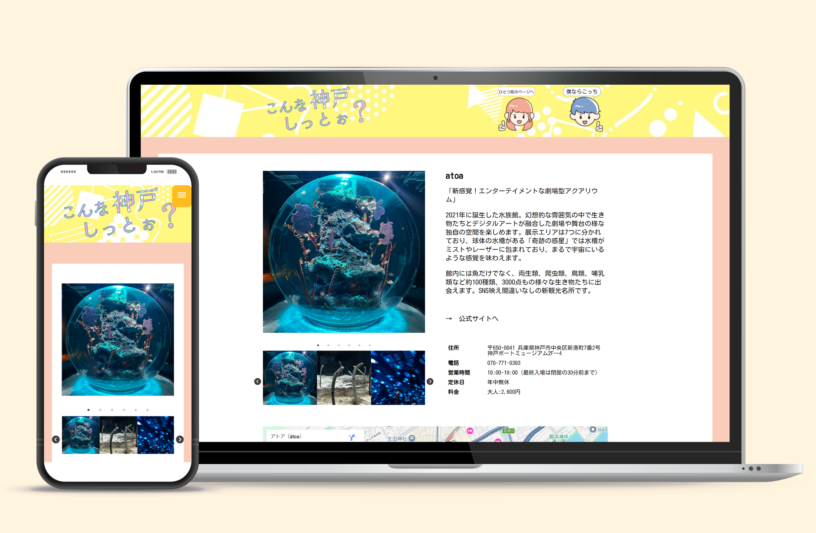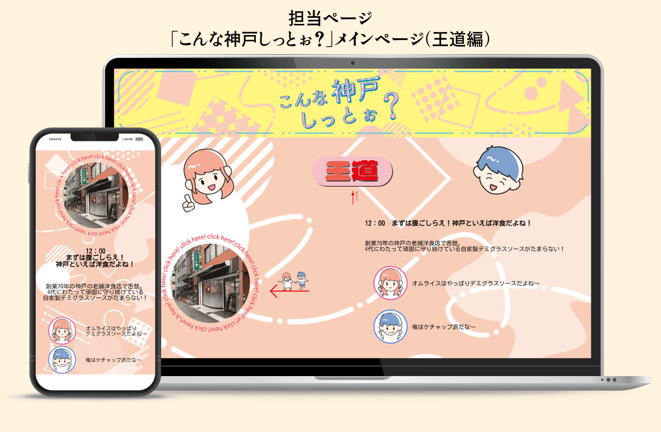 グループ制作として、「コロナ明け後の神戸観光」を題材としたWebサイトを制作。