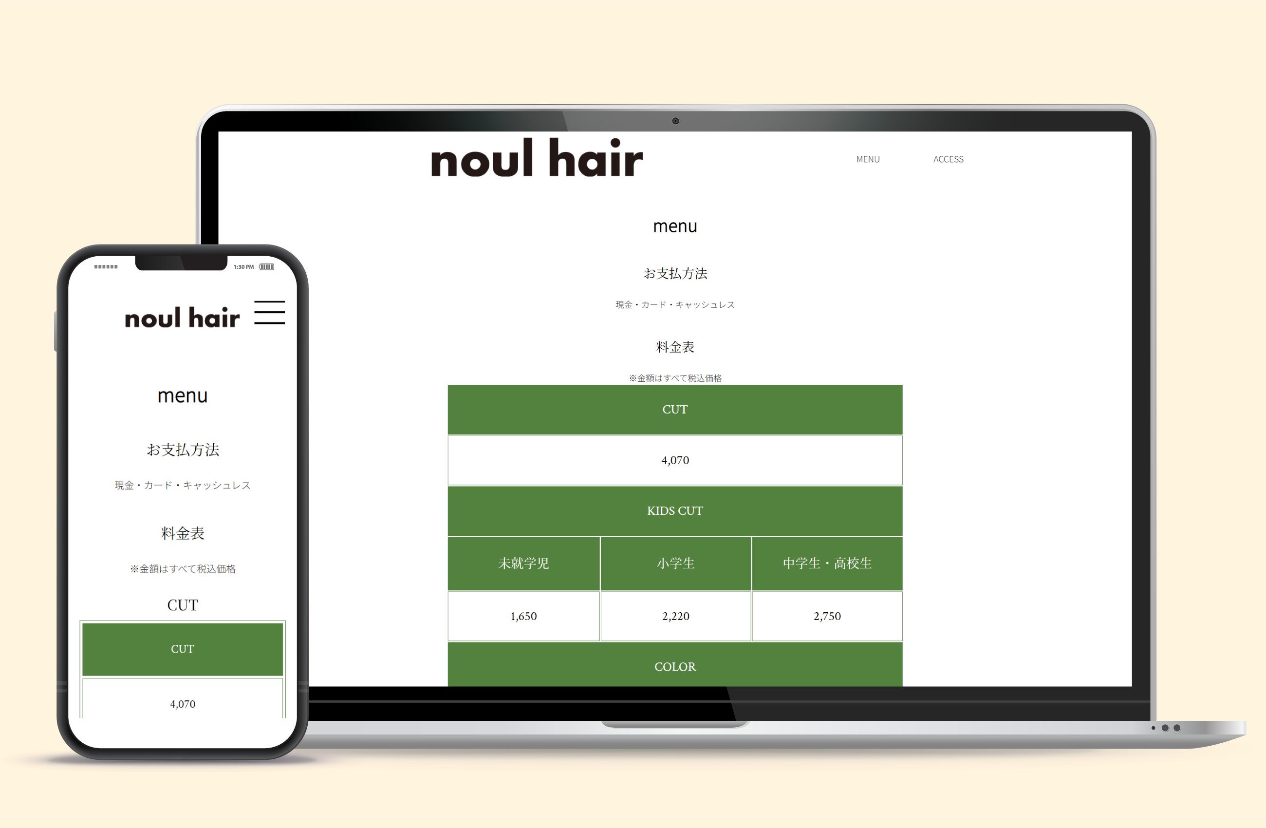 | サイトの目的 | 店舗情報の提供、来店・予約をスムーズに促すためのWebサイト構築。 |